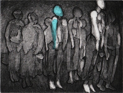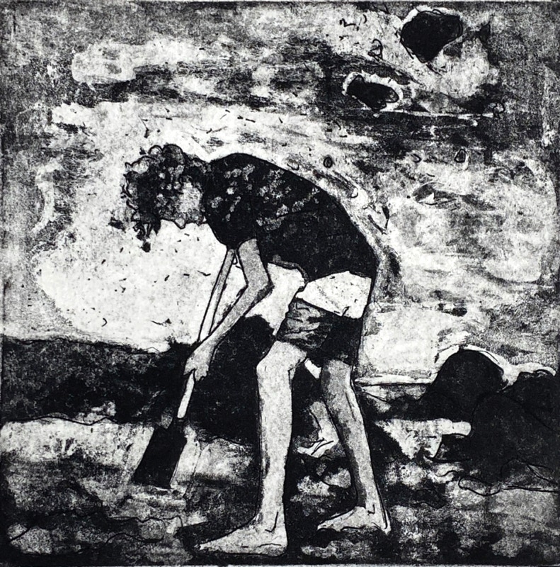 « Mes estampes, imprimées à partir de matrices de cuivre ou zinc gravées à l’acide, sont figuratives, mettant en scène des personnages et des situations auxquels tout à chacun peut s’identifier. »